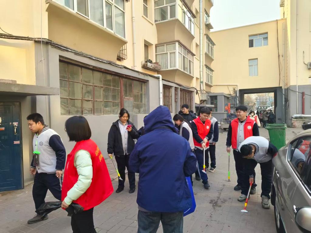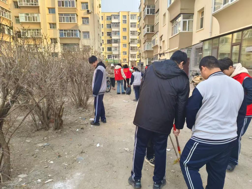 活动现场,师生志愿者们身着志愿服装、佩戴党徽团徽,手持扫帚、簸箕、垃圾夹等工具,分工协作、干劲十足。大家对社区公共区域、楼道周边、绿化带及卫生死角进行全面清理,认真捡拾垃圾、清除杂物、规整环境,不放过一处细节、不留下一个盲区。党员教师率先垂范、冲锋在前,团员青年积极响应、踊跃参与,充分展现不怕苦、不怕累的优良作风,用汗水美化社区家园,赢得社区居民的一致认可。